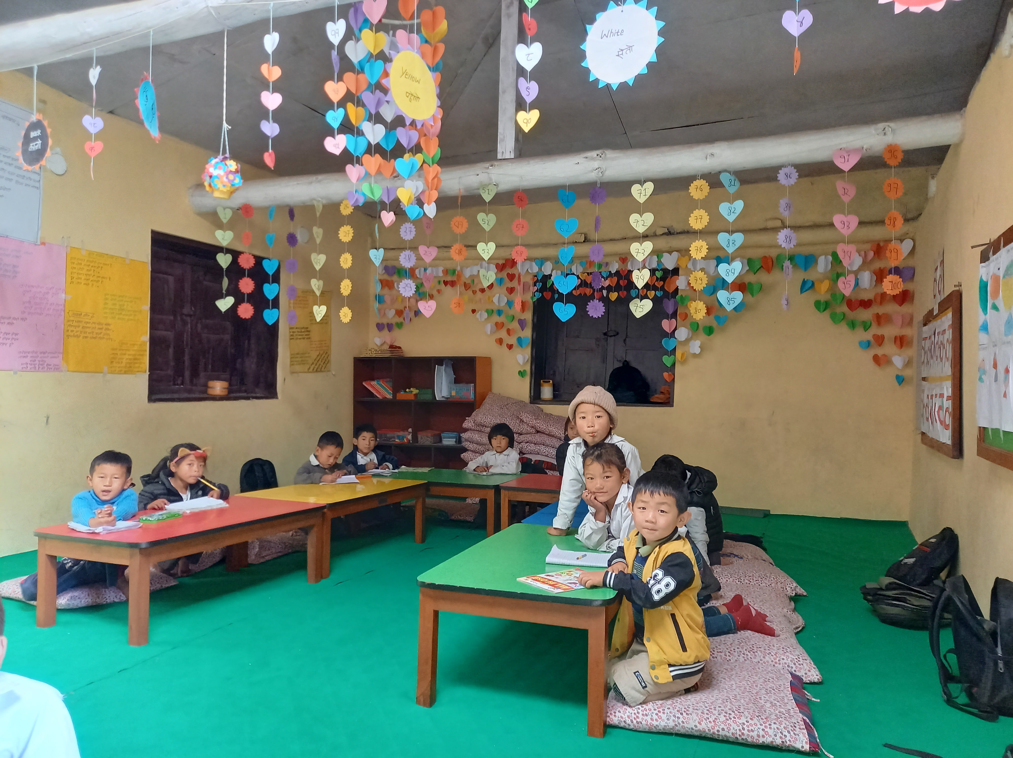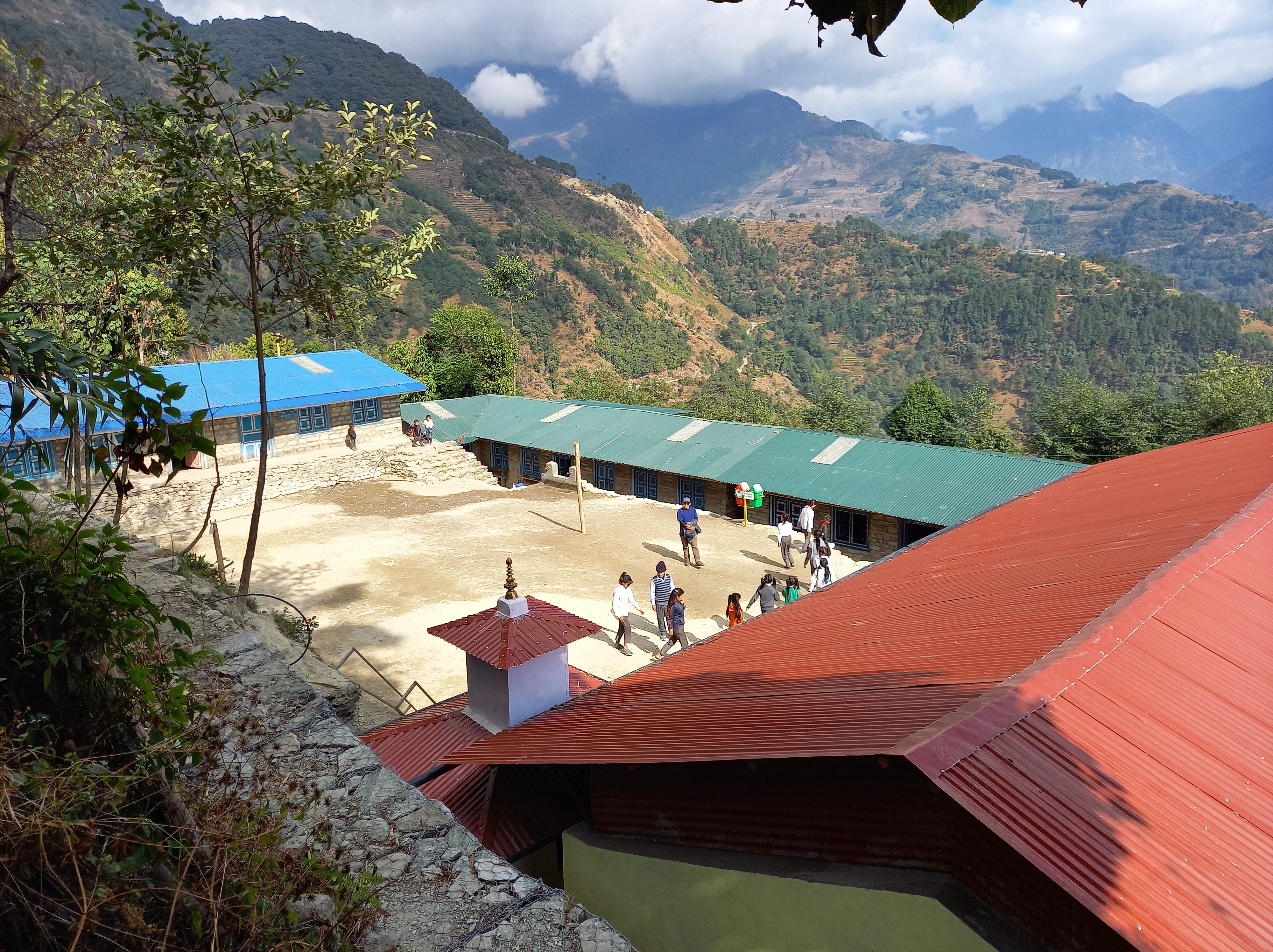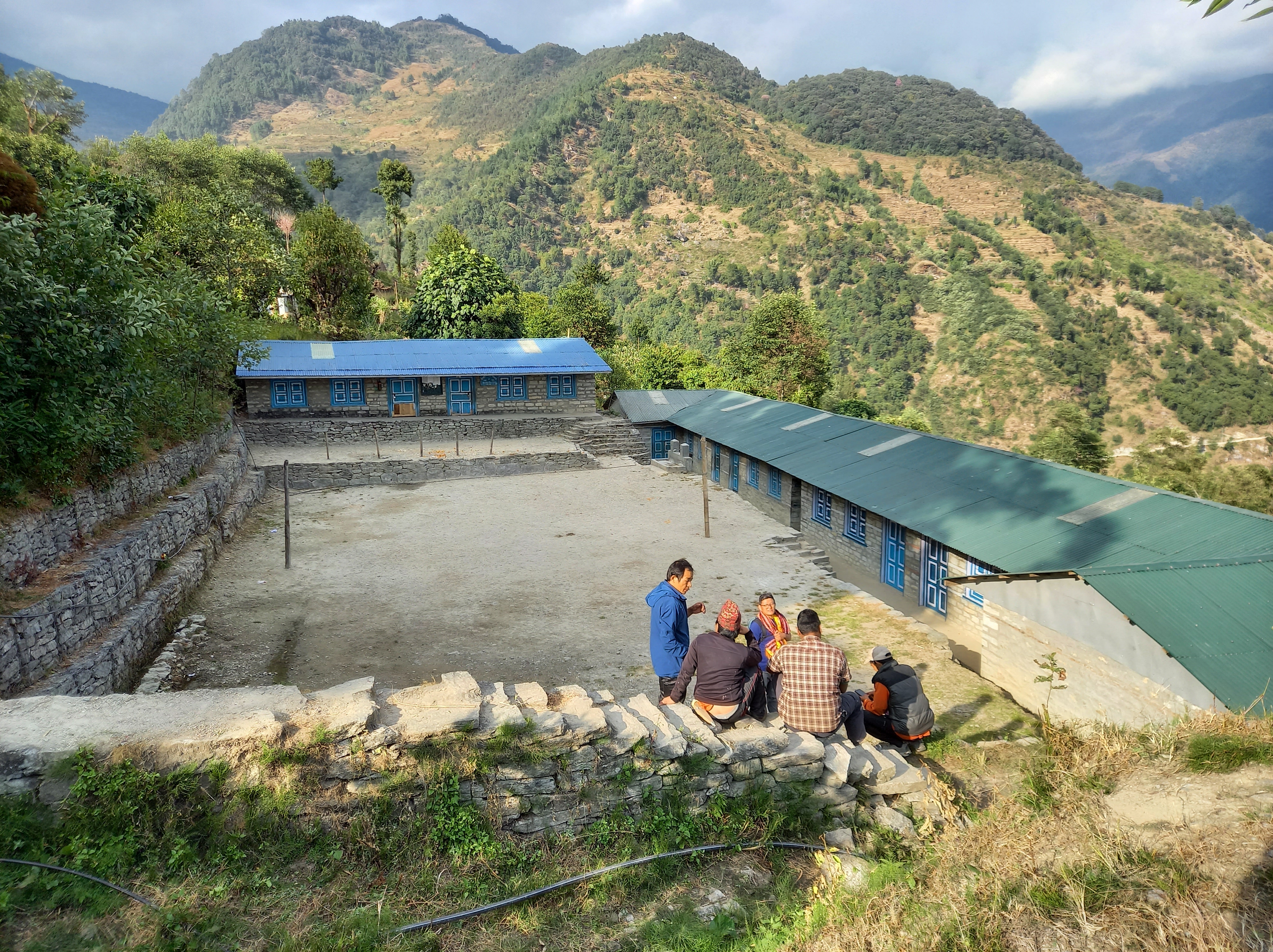 Die Schule wird neben uns auch von anderen Organisationen punktuell unterstützt (z.B. für eine kleine Bibliothek oder Schulinventar) und seit 2022 beteiligt sich auch die Regierung wieder an der Finanzierung der Gebäude, der Stützmauern sowie einen Teil der Löhne. Die restlichen Lehrerlöhne und bauliche Investitionen wie Gebäude, WC-Anlage, Spielplatz oder Stützmauern stammen von Himchuli Schweiz. Wir begleiten das lokale Team nun über viele Jahre und versuchen, mit den Lehrpersonen auch im pädagogisch-didaktischen Bereich neue Ideen zu erarbeiten. Dank ihrer aktuellen Grösse ist die Schule seit 2022 als Government School registriert.
