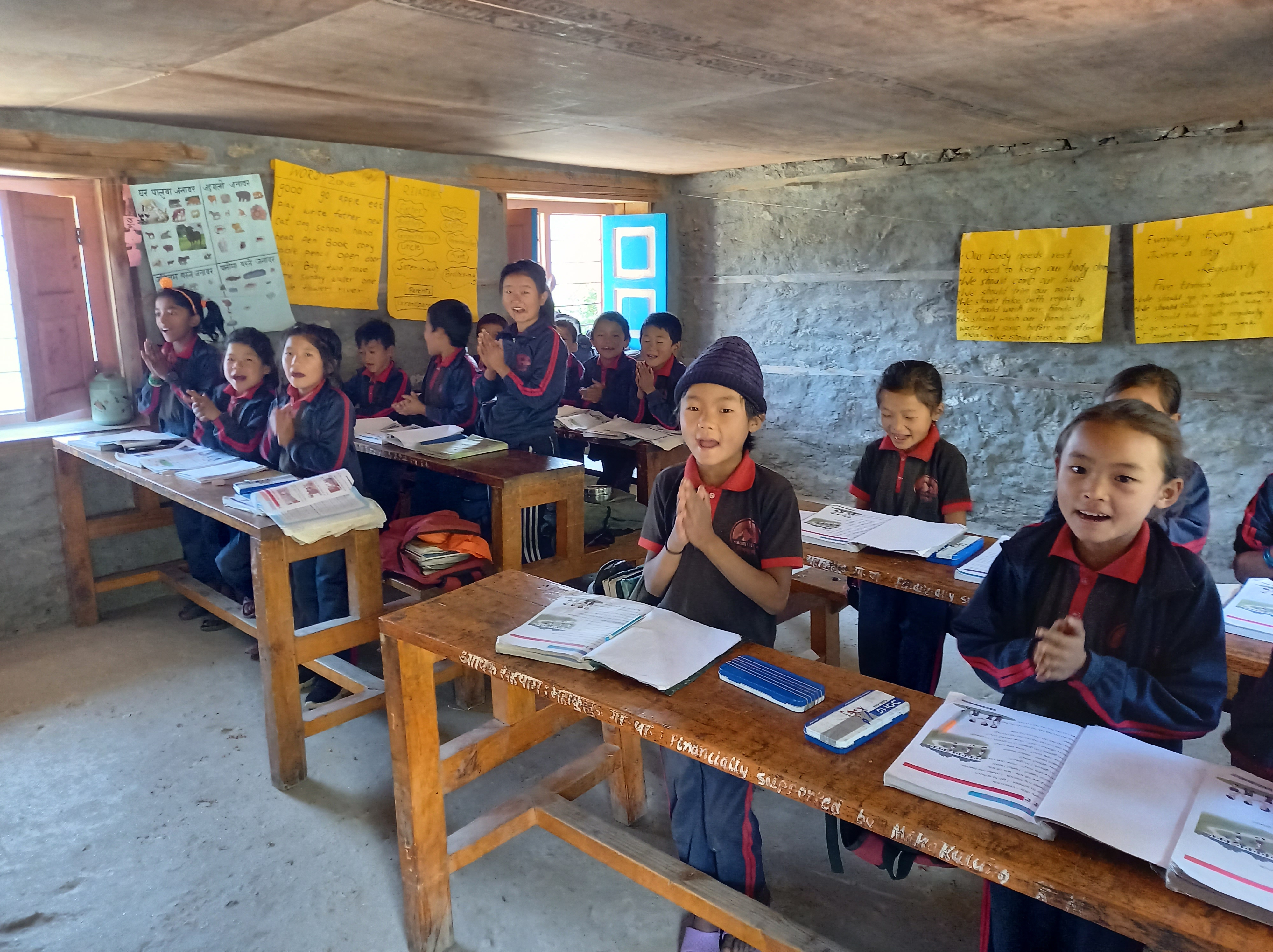 Unser langfristiges Projekt ist die (ursprünglich private) Primarschule in Bung. Im Erdbebenjahr 2015 haben wir die Mitglieder des Himchuli Youth Unity Clubs kennengelernt, die diese Schule mit 2 Klassen und 2 Lehrpersonen aus Spenden der Lokalbevölkerung gegründet haben und sie führten. Nach dem Erdbeben war dies nicht mehr möglich, weil diese Spenden fehlten. Mit Hilfe unserer Spenden und ihrer Eigenleistung konnte die Schule erweitert werden, so dass dort inzwischen 7 Klassen mit über 100 Kindern unterrichtet werden.